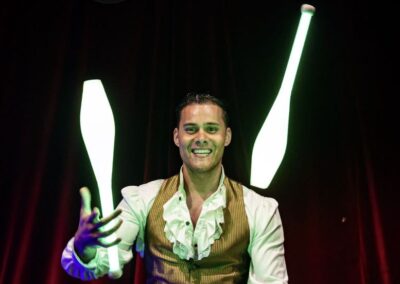 Wil je een spectaculaire jongleur met LED show boeken voor jouw evenement, festival of bedrijfsfeest? Jongleur Nigel zorgt voor een unieke combinatie van circuskunst, entertainment en lichtshow die jouw gasten nog lang zal bijblijven. Juggler Nigel is een professionele jongleur die met LED-ballen, kegels en andere verlichte objecten een indrukwekkend visueel spektakel neerzet. Zijn acts combineren techniek, snelheid en show, waardoor hij een echte blikvanger is op ieder evenement.