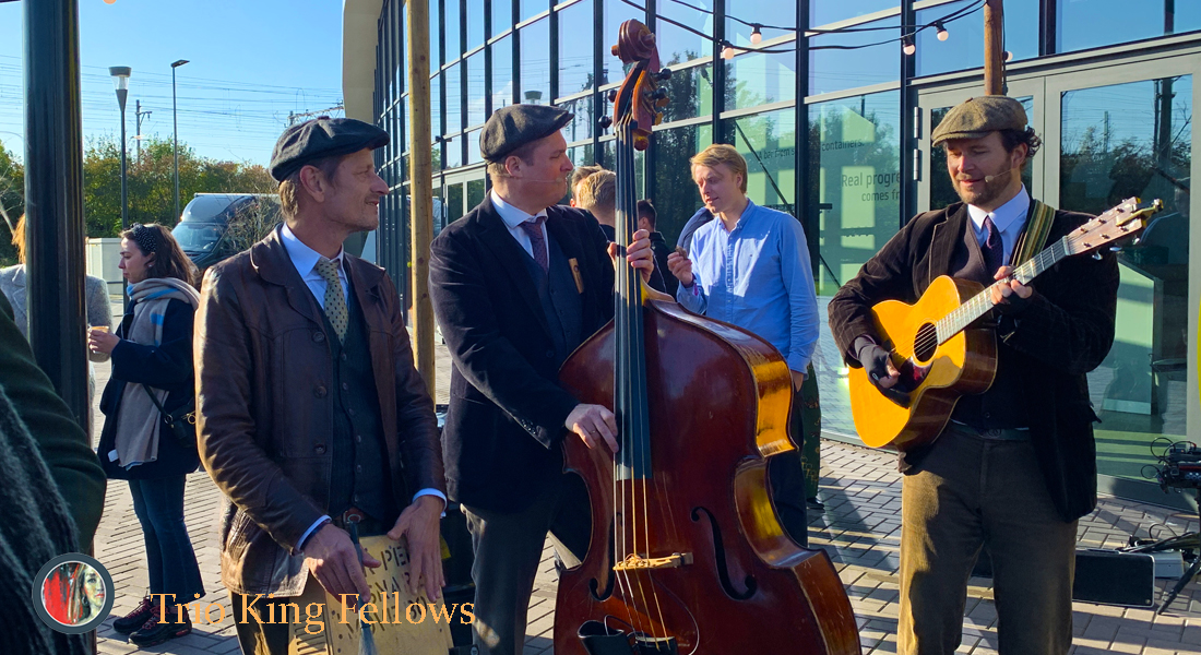 Mobile trio King Fellows, cozy, walking around, acoustic music